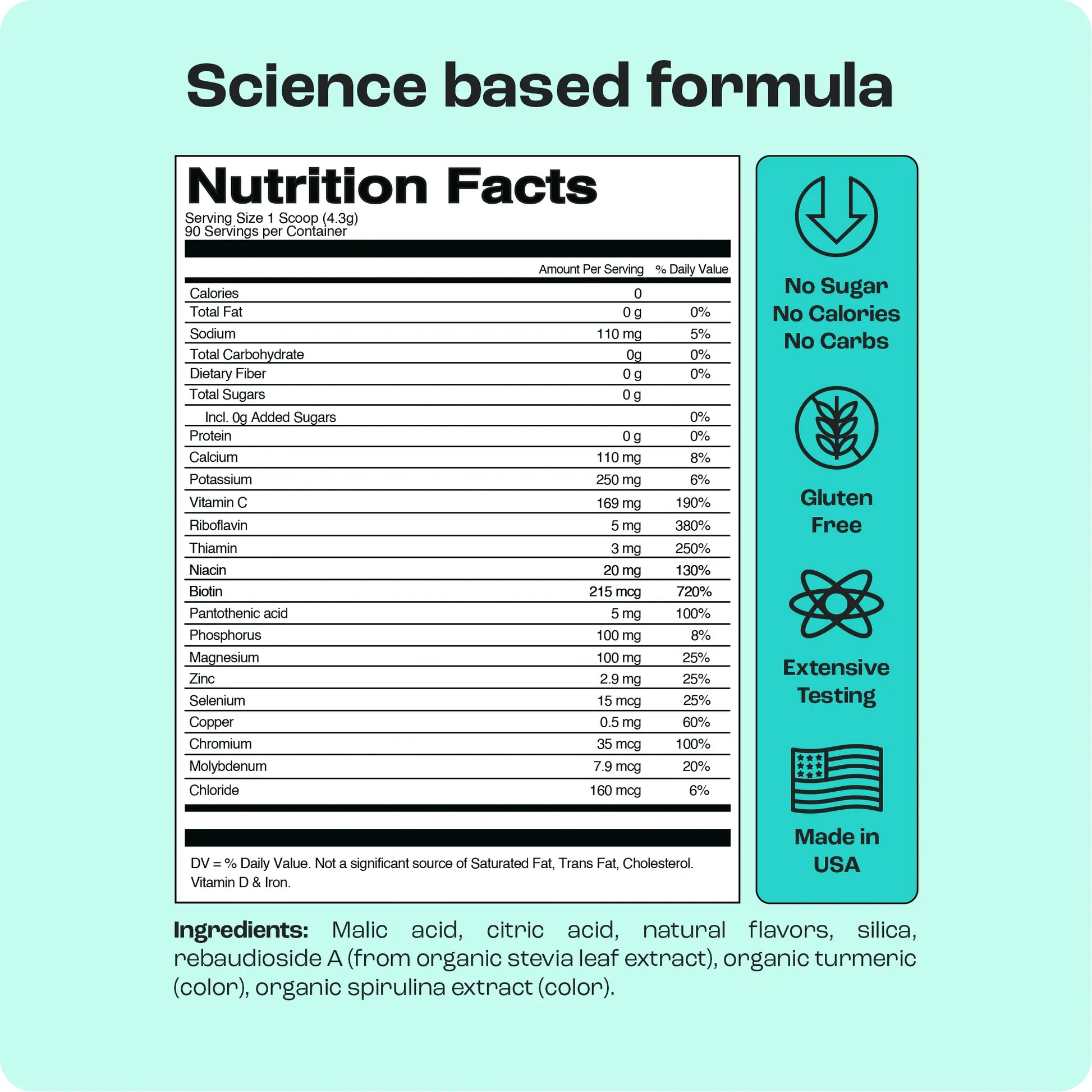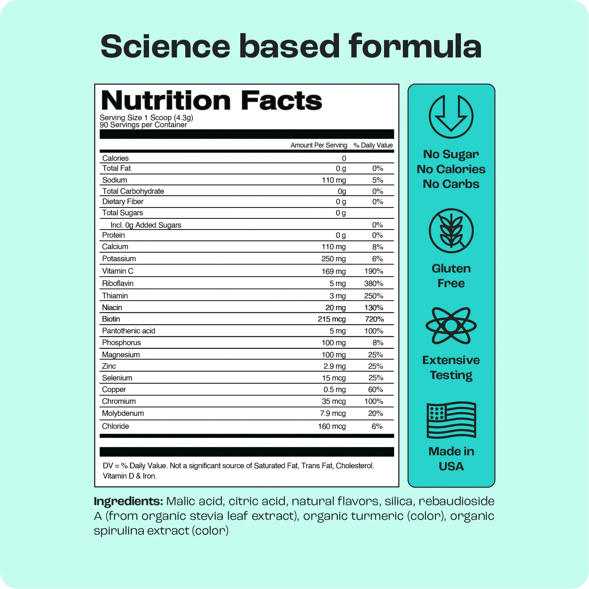 - Zero Calories & Carbs, Keto & Paleo Diet Friendly - Sweetened with Organic Stevia Extract, our drink mix is sugar free and has zero calories. Feel right and great without the guilt.